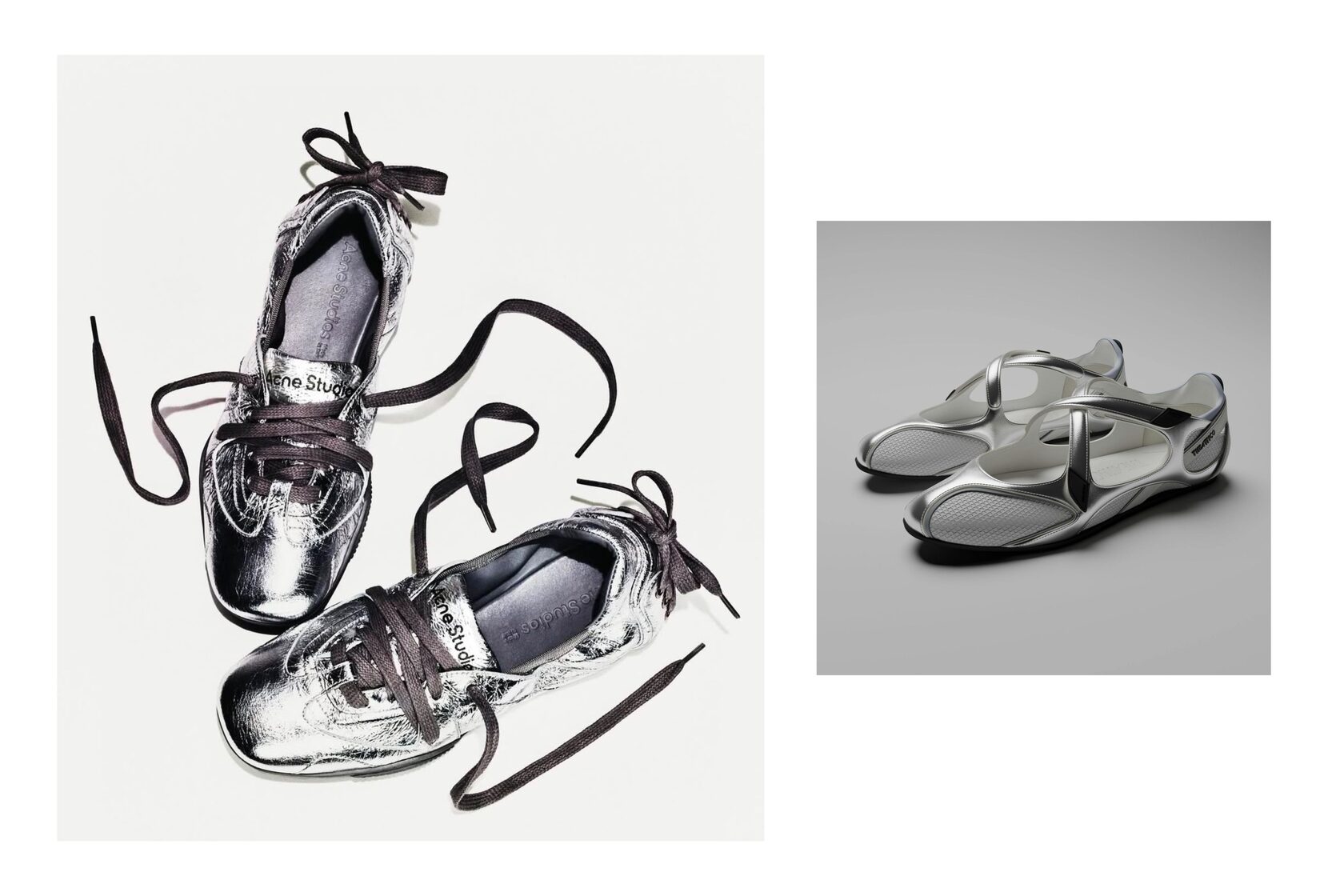 - Nu-niforms: этот непереводимый термин означает слияние поп-культуры, униформы и офисной одежды. Такая обувь отличается фантазийными силуэтами, обогащенными футуристическими деталями, например, смелыми цветовыми блоками. Этот будущий минимализм несет женственный взгляд на футуристическую эстетику – производителям стоит подумать о простых моделях в металлизированных оттенках с переливчатой отделкой.